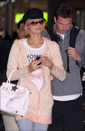 話題女王帕麗斯·希爾頓再次甜美出擊,這次去日本東京為自己的產品做宣傳的帕麗斯·希爾頓甜美無比,黑色的畫家帽歪帶,粉色邊框的墨鏡搭配嫩嫩的粉色開衫外衣和最流行的嘴唇印記短袖衫,甜美的像是17 18歲的少女。看到剛剛過完28歲生日的帕麗斯·希爾頓還要繼續可愛下去。