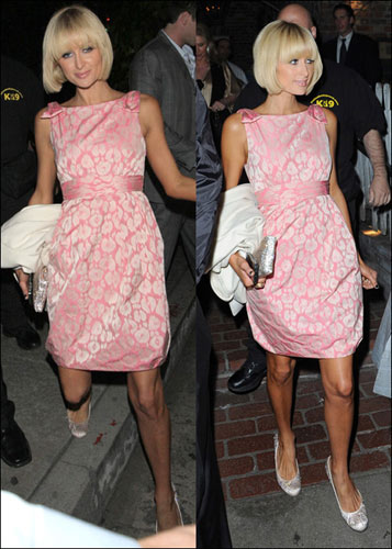 帕麗斯·希爾頓每次出現都絕對是我們矚目的焦點,聚光燈下的絕對寵兒。3月24日晚上帕麗斯·希爾頓和男友外出吃飯,當天的帕麗斯·希爾頓身穿粉嫩的連身裙配上自己金黃色蘑菇頭,濃密的睫毛排在眼睛上,十分的甜美誘人。銀色BLING BING高跟鞋配銀色手包。