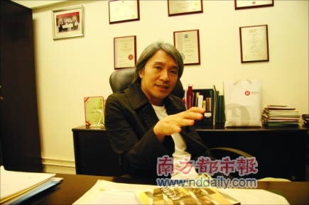 25日晚上九點鐘在寫字樓找到星爺。是他約在這個地點見面的,他和同事開會還沒結(jié)束,但為了這次是非,不得不見一見記者。當(dāng)記者在他的辦公室見到他時,星爺一面倦容,滿面須根,問他是否受到打擊,情緒落寞,不修邊幅?