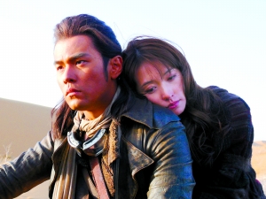 電影《刺陵》昨日在內(nèi)蒙古中衛(wèi)取景拍攝,零度低溫下男主角周杰倫以黑袍、黑手套酷帥造型拍攝英雄救美戲份,被救的女主角林志玲昨嬌羞表示:“我是一個(gè)小說(shuō)家,無(wú)端被卷入這場(chǎng)盜墓風(fēng)暴中,被壞人(曾志偉飾)綁架。”導(dǎo)演朱延平笑說(shuō):“林志玲片中唯一一場(chǎng)床戲就是給了曾志偉,不過(guò),曾志偉只看了一眼躺在床上的美女就被周董‘干’掉了。”記者 楊林