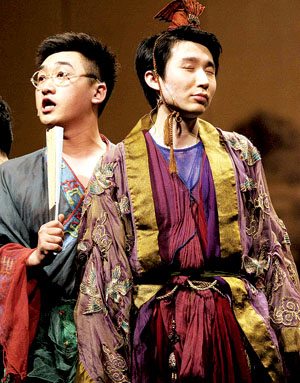在前天的演出中,飾演三皇子的80后演員孫曉鵬的表演最為賣力,臺詞幽默、時尚。據記者統計,他出場時觀眾笑場多達19次。
