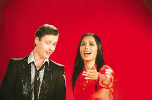 韋唯與維塔斯在錄音棚初次見面氣氛就相當(dāng)融洽,盡管兩人語言不通,但維塔斯施展的耍寶逗樂功夫讓韋唯忍俊不禁。兩人面對(duì)鏡頭進(jìn)入狀態(tài)很快,尤其是在對(duì)唱時(shí)更加自然親近。記者 俞亮鑫