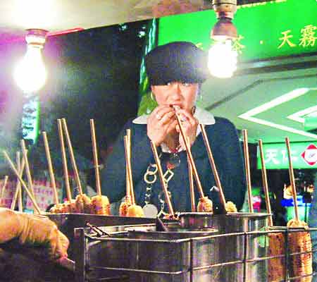 葉倩文到林森北路逛夜市,試吃花生和菱角,贊不絕口。
