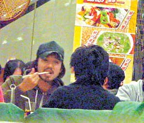 馮德倫(左)在餐廳用餐,刻意不與張雨綺坐一起。