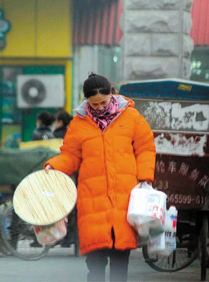 圖文:那英素顏超市購物 穿橘紅羽絨服像全職太太