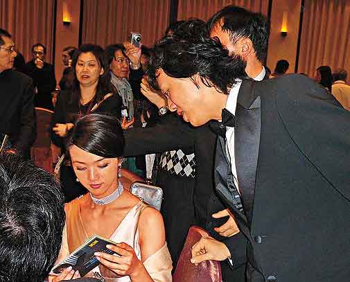 李云迪對湯唯大獻殷勤,在慶功宴上經常留意她,明顯對她很有好感,記者問李云迪有沒有看《色》片?他面露尷尬說:“有,但我是看內地版(編注:該版本刪剪了三場情欲戲)。”當李云迪看見湯唯將其最新CD拿在手中時,他也笑逐顏開。