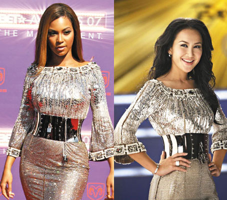 中新網12月19日電 東西天后不約而同,都愛D&G的閃耀性感,沉浸在愛河中的李玟,日前就穿上碧昂絲曾經穿過的同一件手工禮服,登上長城拍奧運MV。