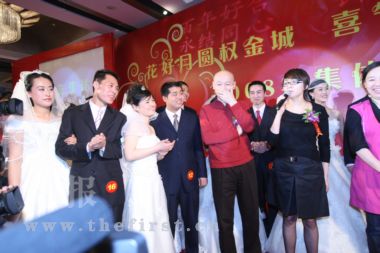 婚禮現(xiàn)場(chǎng)一直以浪漫的音樂(lè)做背景,彩帶飄揚(yáng),鮮花搖曳。新娘新郎們興奮地參加權(quán)金城為他們準(zhǔn)備的各項(xiàng)活動(dòng),他們的臉上始終洋溢著幸福的笑容。宋丹丹說(shuō):“平日在小品里經(jīng)常演農(nóng)民工,看到這些來(lái)自農(nóng)村的新人們覺(jué)得特別親。農(nóng)民工咋了,勞動(dòng)最光榮!我們這次來(lái)就是要喚起全社會(huì)對(duì)農(nóng)民工的關(guān)愛(ài),他們?yōu)槌鞘薪ㄔO(shè)做了很大貢獻(xiàn),社會(huì)應(yīng)該為他們提供力所能及的幫助,解決他們的困難,讓他們生活得更幸福。”