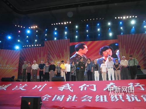 中新社北京五月二十六日電 (記者 淮黎霞) “情暖汶川•我們在行動----全國社會組織抗震救災募捐活動”昨晚在北京首都體育館舉行。