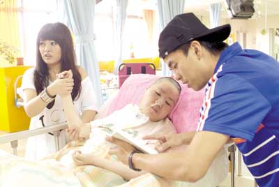 戴愛玲與柯有綸是為植物人進行復建的工作,并與已蘇醒的植物人進行互動。戴愛玲為他們按摩并與他們進行傳球游戲。柯有綸則是在一旁念《阿育王的故事》給他們聽,幫助他們思考。(記者唐雪薇)