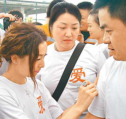 至下午3時多,他們到成都一間消防局為數百名消防員打氣,他們是首批進入災區徒手在瓦礫中救出幾百名傷者的英雄,華仔和Sammi帶頭向這班消防英雄敬禮。Sammi說:“第一隊人入災區以血汗救人,這些人是真英雄。”華仔則說:“5.12地震發生后,我先知道內地消防員是這樣,她們不顧自己安危,我真是好敬佩。”