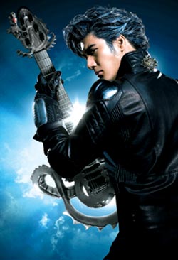 中新網7月18日電 最近,王力宏為9月份演唱會進棚拍攝宣傳海報,將自己改造為“MUSIC MAN”音樂超人。據臺灣《中國時報》報道,王力宏穿上漆黑的皮衣搭配銀色護甲,再將頭發挑染成金屬色澤的藍發色,手拿“音符龍”圖騰的電吉他,充滿漫畫元素及未來科技感,氣勢十足。