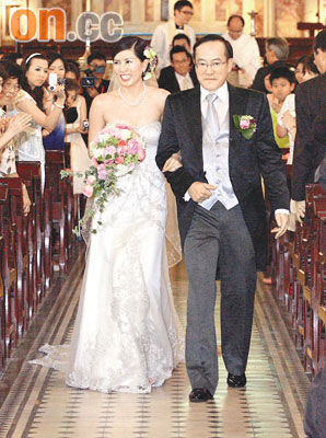 羅慧娟與劉志敏步出教堂,接受大家祝福。圖片均來自香港《太陽報》。