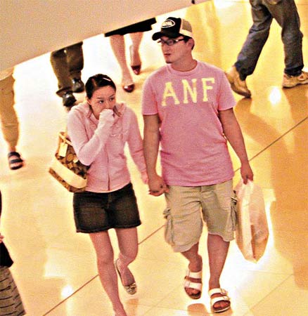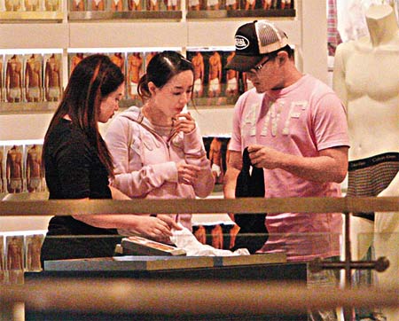 前晚陳思慧與Larry先在美食廣場(chǎng)兜了一圈挑選美食。飽肚后二人十指緊扣離開美食廣場(chǎng)逛商場(chǎng)店鋪,不過(guò)因當(dāng)時(shí)不少店鋪已關(guān)門,二人僅能做櫥窗觀光,其后見CalvinKlein內(nèi)衣褲專門店還未關(guān)門,他們便第一時(shí)間走進(jìn)店內(nèi)左挑右選。