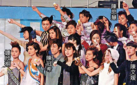 02年陳思慧與陳冠希、鐘欣桐及陳文媛一起出席無(wú)線音樂(lè)節(jié)目宣傳活動(dòng)。