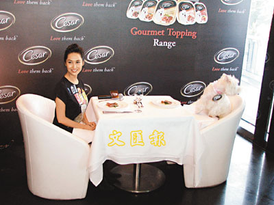 中新網(wǎng)10月22日電 據(jù)香港文匯報(bào)報(bào)道,朱茵昨日出席“西莎主人及愛犬星級盛宴”,和白威狗一起共進(jìn)午餐,又親自炮制狗狗美食,一向愛狗的朱茵更早于前日就和這頭白威狗一起做訪問及拍照。