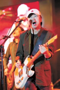 昨晚演出前,老崔應邀做客“LOVERADIO搖滾唱談會”,頭上還是那頂標志性的白色鴨舌帽,以至于在場有記者追問:這是否已經成為上場表演的慣例?崔健解釋說,五角星加鴨舌帽的裝束是一種偶然,“我對表演服裝的唯一刻意就是不想太沒有個性,別的就沒想太多”。自言在上海演出已經不是一次兩次的老崔,對這次表演還是格外看重,他說,因為舞臺設在商業區的街心廣場,直接面對的觀眾大部分都是普通老百姓,這是第一次,也是一大挑戰。也正因此,代表作《一無所有》理所當然地成為了必唱曲。