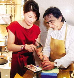 昨天,“跳水皇后”郭晶晶在武漢為意大利某品牌鞋擔任嘉賓,身穿絲綢紅裙的她受到民眾熱捧。郭晶晶還現場向設計師學習如何釘鞋。○茅中元