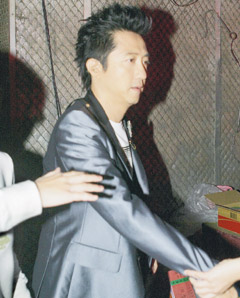 中新網(wǎng)11月26日電 “伊能靜與黃維德?tīng)渴謶偾椤北l(fā)后,伊能靜的丈夫庾澄慶第三周進(jìn)棚錄像,再演出瞞天過(guò)海戲碼,神不知鬼不覺(jué)出現(xiàn)化妝間,據(jù)目擊者指出,庾澄慶是從臺(tái)視后側(cè)貨物進(jìn)出專用門快速進(jìn)入,再?gòu)膶S秒娞萆蠘牵@次他臉色更陰沉,對(duì)記者視若無(wú)睹,在化妝間還詢問(wèn)任務(wù)人員:“今天有很多攝影記者嗎?”隨后直沖上場(chǎng)主持“百萬(wàn)大歌星”。