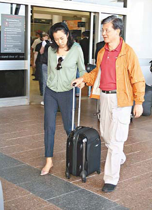 羅康瑞與朱玲玲在當(dāng)?shù)貢r間昨日早上七時許飛抵澳洲悉尼,朱玲玲雖然不施脂粉,但仍精神充沛、容光煥發(fā),加上身穿緊身Tee及針織外套,優(yōu)美身段表露無遺,難怪有靚足五十年的“最美麗港姐”之稱。丈夫羅康瑞打扮同樣樸素,身穿外套、西褲及休閑恤衫,但亦難掩其新婚喜悅,全程笑容滿面。兩人的行李中更有高爾夫球用品,看來一向熱愛運動的兩人,蜜月期間計劃打高爾夫增進(jìn)感情。