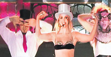 中新網12月18日電 “小甜甜”布蘭妮(Britney Spears)遠赴日本宣傳新專輯《馬戲團》(Circus)。她連2天接通告,繼上松元人志主持的音樂節目《HEY! HEY! HEY! 》后,她前天又上日本電視臺的節目《Best Music Artist》。她深知2節目對打,還特地換打歌服,演唱單曲《花花公子》(Womanizer)時,改穿黑色鑲金閃亮奶罩與熱褲,帽子也換成白色。
