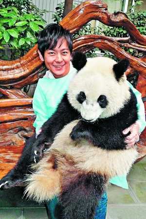 林志穎赴成都大熊貓基地 擁抱熊貓“香檳”(圖)