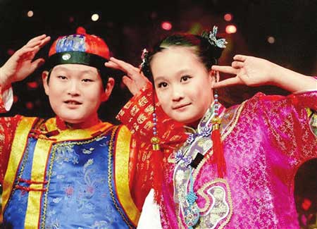 由沈陽籍歌手火風、汪正正領銜演唱的開場歌舞《大拜年》,以火爆熱鬧掀開了遼視春晚的蓋頭,節目中一對童聲演唱的表演者正是趙本山的一對龍鳳胎寶貝牛牛和妞妞。屬牛的牛牛和妞妞今年恰逢第一個本命年,這次表演對他們來說也是兄妹倆首次聯手的舞臺處女秀,因此兩個小家伙煞是認真,無論是彩排還是正式表演,舉手投足都像模像樣,看起來是深得父親的真傳。