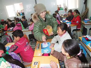 昨日,成都《新潮生活周刊》以《死于硬盤 生于硬盤》為題曝光了一批鐘欣桐(阿嬌)年前往北川賑災(zāi)的圖片,記錄了她探訪重災(zāi)區(qū)北川的鄉(xiāng)村小學的全過程。該小學的校長透露,阿嬌的和藹可親得到了孩子們認可,其中一張圖片里,阿嬌還親切地給一個婦女背上的女孩子喂桔子。據(jù)采寫該報道的記者透露,這組照片其實是得自一個遺落在當?shù)鼐瓢傻挠脖P。
