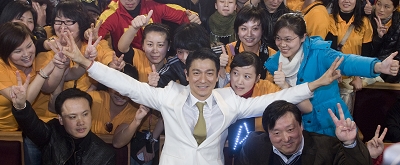 華仔天地”內地首個分會——上海“華仔天地” 影音文化發展促進會成立大典昨日在上海東方藝術中心舉行,“大家長”劉德華乘坐“Andy World Club”巴士亮相與FANS互動,現場高潮迭起。被FANS親切稱為老大的他變起魔術像模像樣,戲言“干脆我以后去當魔術師吧”。在接受采訪時,劉德華還透露自己確實曾跟寶島魔術師劉謙學藝,有望于一年后與周杰倫合作一部“魔術”電影。對于日前盛傳他將以與阿嬌同拍電影的方式支持晚輩復出一事,劉德華表示自己的確會支持阿嬌復出,但目前還沒有實際的計劃。