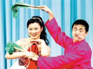 作為趙本山弟子中唯一一個(gè)從小學(xué)習(xí)二人轉(zhuǎn)的專業(yè)演員,閆光明不僅嗓子好、武功好,戲路也寬,在“首屆趙本山杯二人轉(zhuǎn)大獎(jiǎng)賽”中曾獲表演銀獎(jiǎng)。閆光明非常刻苦,雖然年齡不小了,但現(xiàn)在還是遼寧大學(xué)本山藝術(shù)學(xué)院民族藝術(shù)表演專業(yè)的大四學(xué)生。去年的全國大學(xué)生藝術(shù)節(jié)上,閆光明和妻子趙海燕以一段新編二人轉(zhuǎn)《梁山伯與祝英臺》獲得一等獎(jiǎng)。能有今天的成績,閆光明自己也“沒想到”:“我生在二人轉(zhuǎn)世家,能有今天的成績說明這么多年的努力沒白費(fèi)。”他也不忘感謝師傅趙本山,“師傅讓二人轉(zhuǎn)越來越紅火,我得繼續(xù)努力,把我熱愛的民間藝術(shù)發(fā)揚(yáng)光大。”舞臺上擅長模仿趙本山的閆光明說,“我們對天津觀眾很熟悉,因?yàn)樘旖蛴袆⒗细笪枧_,我認(rèn)識了很多天津朋友。這次來天津演出,希望大家一樣支持我。”