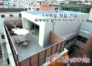 據(jù)職員透露,金某招待客人的場(chǎng)所一般是在企劃室一層的紅酒吧,不過(guò)有時(shí)還會(huì)用到3樓以及外部的空間。接受招待的一般是電視臺(tái)的導(dǎo)演和電影制作人以及政、經(jīng)界的人物,而參與招待的大部分是經(jīng)紀(jì)公司的女演員。據(jù)悉,3樓是由房間和陽(yáng)臺(tái)構(gòu)成,房間是按照酒店一樣裝修的,浴室和寢室都具備,房間和陽(yáng)臺(tái)是相連的。酒會(huì)和生日派對(duì)一般都在這里舉行。