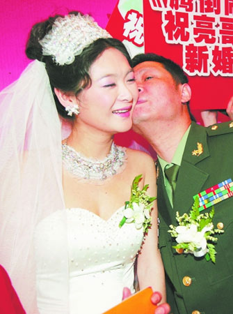 張國立等明星送上真誠的祝福;羌族村民獻上祝酒歌;鐵桿影迷前來道賀……昨日中午,因“毛子”“三德子”形象紅遍全國的川籍著名演員趙亮在成都大擺喜宴,迎娶新娘胡敬。擺足了87桌喜酒的婚禮現場熱鬧非凡。一對新人在互贈戒指的環節中眼眶紅紅,趙亮更發表愛的宣言:“這下我們雙方就套住了,永遠套牢,永不分開!”