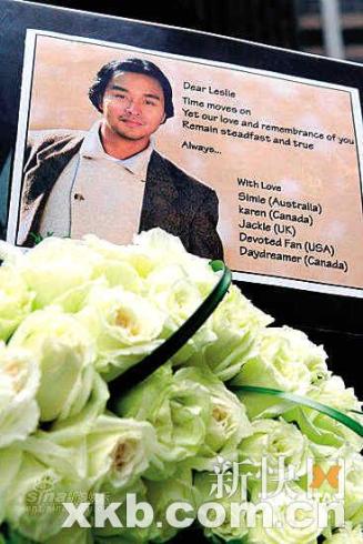 張國榮(哥哥)的歌迷昨天在香港文華東方酒店外舉行悼念活動,紀念哥哥去世六周年。事發地擺滿歌迷自發送來的各式鮮花。3月31日上午11時開始,便有歌迷從上海、臺北,日本、美加、英國、澳大利亞等地趕到文華東方酒店向偶像悼念,并送上心形花牌給哥哥。