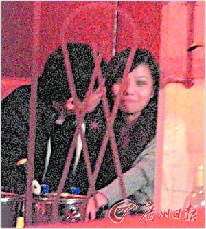 5月8日晚上9時,呂方帶領(lǐng)三名男友人,往灣仔區(qū)一間只招待熟客的高級卡拉OK消遣,眾人來到VIP房,10分鐘后兩名年輕貌美,年約20歲的少女入內(nèi),呂方對一名眼睛大大下巴尖尖,笑容極甜、貌似蔡少芬的小姐特別喜歡,兩人邊唱歌邊喝酒,呂方還興奮地叫了一支2000元的威士忌跟小姐慢慢喝。酒過三巡,呂方與美女愈坐愈近,更唱情歌討好美女,又不時跟女方耳語(見右圖)。狂灌威士忌、香檳及啤酒后,跟小姐愈玩愈癲的呂方,竟突然抱起小姐又?jǐn)堄钟H,難得小姐非常樂意,任他熊抱兼吻面,呂方更蒙起雙眼,陶醉得久久不能張開。