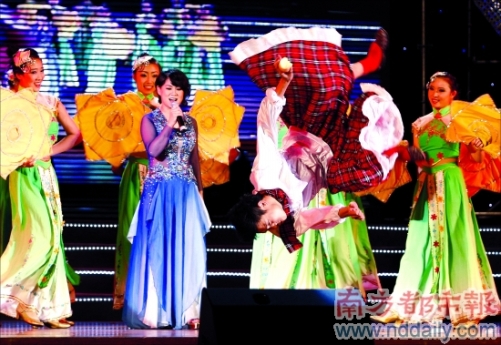 孫麗榮和蘇小龍的老太太倒追小帥哥的段子也笑料百出,孫麗榮扭曲走步法、跳大神和背地名堪稱一絕,追帥哥更是追到了舞臺下,最后擁抱了某位男觀眾才心滿意足上臺。本報觀劇團特別填寫了調(diào)查報告,報告顯示有47%的觀眾認為小沈陽的師兄弟“很出色,不比小沈陽差,只是缺少機會!