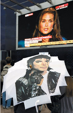 中新網(wǎng)7月9日電 在昨天凌晨舉行的邁克爾杰.克遜公眾告別式上,波姬.小絲感性致詞,令無數(shù)觀眾為之動容,外界都知道她曾與杰克遜交往,但最近她才在受訪時透露曾數(shù)度拒絕對方求婚。而杰克遜最崇拜的黛安娜.蘿絲缺席告別式,僅發(fā)表聲明表示自己的心已至?xí)䦂觯偈菇芸诉d一家需要,自己會義不容辭照料杰克遜的孩子。