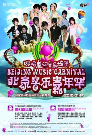 中新網1月8日電 2010年1月17日,“咪咕魔幻音樂城堡”嘉年華大型演唱會將在北京國家奧體中心體育館上演,SHE和飛兒樂團兩大天團,新生代歌手林宥嘉、劉力揚,飛兒樂團的小師妹郭美美、偶像型男何潤東、搖滾天王許巍、及剛復出的情歌王子李天華等偶像齊聚,獻上精彩表演。