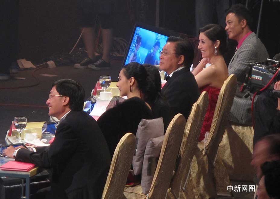 圖為:本屆港姐決賽五位評判(由遠至近):藝人任達華、李嘉欣、立法會議員林健鋒、奧運體操冠軍劉璇、太平紳士林天福。(攝影:余瑞東)