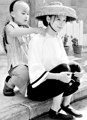 徐若瑄說,導(dǎo)演講戲就把她講哭了,所以連劇本都沒有看就決定接拍《少年星海》。“我喜歡特別挑選有挑戰(zhàn)的角色,我很貪心,希望每一個角色都有困難,能夠讓我去挑戰(zhàn)自己。我出道20年,演戲、主持、唱歌、寫歌,瞎忙活了一陣,最后終于發(fā)現(xiàn)我真正喜歡的是演戲,所以遇到好角色我一定盡力去演,根本不會顧慮到形象等問題。演《少年星海》的挑戰(zhàn)很大,不僅因為我沒有演過母親,而且關(guān)于冼星海母親的介紹資料很少,我做了很多功課,看了很多關(guān)于母親的電影,想借電影來幫我找感覺,比如安吉麗娜·朱莉的《調(diào)包嬰兒》。給冼星海剪辮子的那場戲我借鑒了《末代皇帝》,雖然一個是在巨大的紫禁城,一個是貧窮的一家人,但因為時代是一樣的,我想那時候人的心態(tài)應(yīng)該是有相似之處的。”除了看電影之外,徐若瑄還大量聽冼星海的音樂,希望從音樂中得到與人物的共鳴。