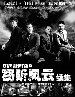 信息時報訊 (記者 陳爽) 劉青云等三大型男主演的《竊聽風云》上映10天內地票房勁破6000萬元,且香港首周票房也超過530萬港元,片方宣布將在本周五舉行慶功宴。同時,由于影片叫好叫座,投資方開拍續集的意愿相當強烈,甚至一早就公布了續集的概念海報(上圖),海報主打劉青云、古天樂、劉德華、甄子丹四大型男,之前廣州宣傳時被“忽略”的吳彥祖就蹤影全無。