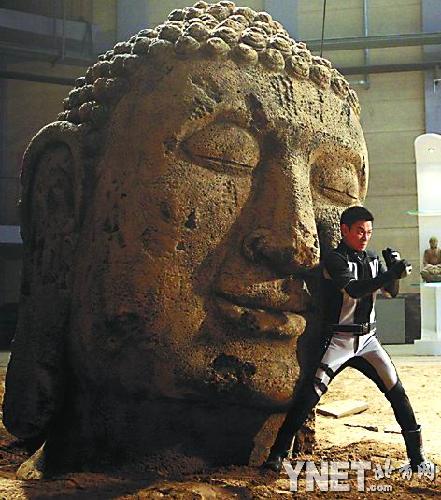雖然已事先備下了保護措設,但在推動佛像的過程中,千余斤的巨物突然失控,瞬間重重砸下,將劉德華劈頭蓋臉整個壓在下面。現場的工作人員嚇得忙一擁而上將劉德華攙扶起來,不料卻又導致畫面穿幫而無法使用。劉德華此時雖然一身疼痛,被重壓折磨得喘不過氣來,卻毫無怨言,恢復過來后毅然再次親自上陣。為了達到最震撼的視覺效果,每一次拍完后,劉德華還會不顧疼痛,跑到監視器前面回看拍攝畫面,有不甚滿意之處就要求重拍。每一次都險象環生,劉德華卻鎮定地勸慰工作人員不要緊張,他的敬業精神令在場的工作人員敬佩感動不已。