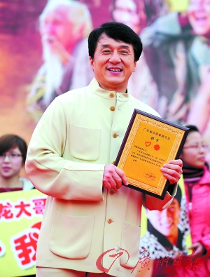 成龍大哥為了新片《大兵小將》做宣傳很賣力,廣州作為第三站,行程卻安排了三場發布會。還不包括流產的一場。為了迎接成龍,各主辦方都掐著時間搞活動,而成龍所到之處,粉絲的熱情讓空氣陡然熱起來。當天,被授予廣東志愿者協會名譽會長的成龍將300張《大兵小將》電影票送給廣州亞運會志愿者。