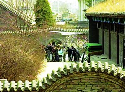 記者在現(xiàn)場看到,在彭公館正門拉警戒線,豎起“閉館,閑人不準入內(nèi)”的牌子,更有一些劇組人在門口把守,記者稍微靠近一些,沒等拿出相機拍照,立刻有人沖上來制止:“不要拍啦,過幾天我們用完了你再拍!”因為是四合院,為了防止有人跳墻進入,記者看到周圍墻上有監(jiān)控鏡頭。不知是為了唬人的還是真好使,轉(zhuǎn)到后院,見有人剛剛踩在磚頭上往院子里張望,立刻就縮了回來,原來,在后院有一條大狼狗把守著,看見人就叫,立刻引劇組人過來查看。雖有些小孩靈活地跳進去,也被工作人員領(lǐng)出,記者親眼見到,兩個十多歲的小姑娘被帶出來后顯得心滿意足,興奮地議論說:“沒見到章子怡和梁朝偉啊,就見一個小女孩扎辮子,估計是演章子怡小時候的角色吧!”