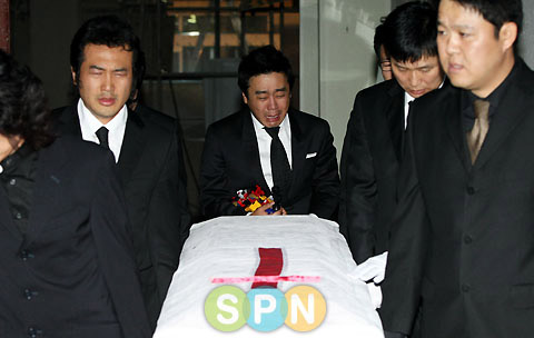 平時和李光基關系不錯的圈內好友們在出殯儀式上和李光基一起分擔了悲痛。