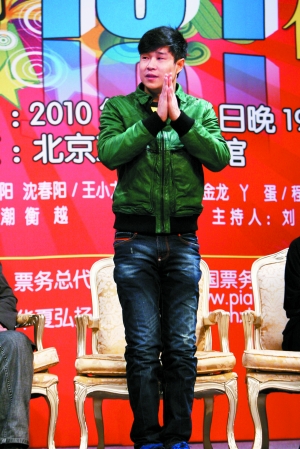 2010年1月9日,“陽仔的第101夜”將在工體館上演。這是繼今年3月以來,小沈陽長達數月的“二人轉馬拉松”的百場紀念演出專場。昨日的媒體見面會上,關于春晚、收入以及明年計劃等焦點問題,小沈陽的回答可謂“滴水不漏”:“春晚還沒有消息”,“(收入)我很滿足”,“(明年)一切都聽公司和師父的安排,我自己說得不算!