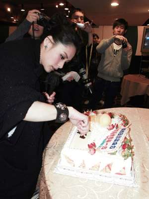 粉絲們得悉阿嬌近日忙于拍戲及籌備新專(zhuān)輯,特意送上寫(xiě)有祝福阿嬌歌影事業(yè)順利的蛋糕。但粉絲又得知阿嬌曾學(xué)做蛋糕,對(duì)蛋糕要求甚高,故特別設(shè)計(jì)了一個(gè)既可表達(dá)粉絲們心意,又能讓阿嬌可即場(chǎng)簽名及自由創(chuàng)作,使兩者心思合二為一的精致蛋糕。