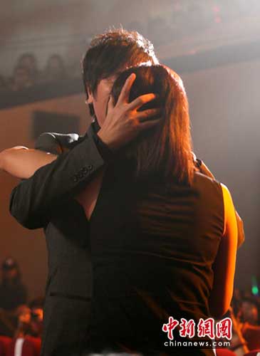 中新網4月12日電 4月11日晚,蒙牛酸酸乳音樂風云榜十年盛典再回深圳盤點華語樂壇新世紀十年。本屆頒獎星光熠熠,那英、陳奕迅、莫文蔚等華語樂壇大腕紛紛登場。本屆盛典評委會主席那英在活動接近尾聲時榮獲“十年最具影響力音樂人物”大獎,在現場言辭激動甚至動情落淚,并和孫楠互相親吻。