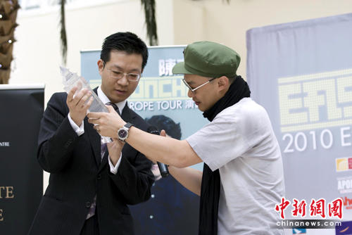 在接收旅英福建籍僑領(lǐng)、大本鐘獎組委會主任李俊辰授予的證書和獎座時,陳奕迅表示非常高興可以參與并獲得這項(xiàng)和全球華人青年相關(guān)的重要獎項(xiàng)。