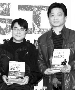 “周述恒指望《中國式民工》的稿酬回家蓋樓,主要就是看沈先生了”。央視著名主持人崔永元邊說邊把話筒遞給了外交部前新聞發言人、世界知識出版社總編輯沈國放。沈國放說,“希望大家都來關注這本書,關注農民工!4月6日下午,四川籍民工周述恒的《中國式民工》一書的首發式在王府井書店舉行。