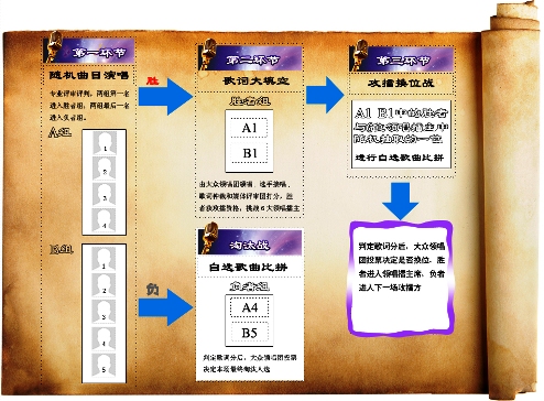 第一階段,網絡上對于“超級領唱全國爭霸”賽制設置以及評判標準的議論很多,不少網友質疑賽制的不公和評判的獨裁。因此,攻擂戰階段,節目組接受網友意見,增加多元化的評審意見和互動性,評審方由專業評審、媒體評審、大眾領唱團組成,而這三方都有著各自的抉擇權。